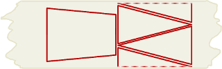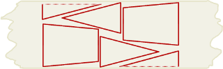 Rozkrój możliwy do uzyskania jeśli 3/2 podstawy trójkąta mieszczą się na szerokości płótna. Ponownie wersja bez rozcinanych trójkątów,